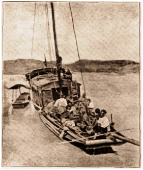 Ha nem kell vontatniok a hajót, annál keményebben dolgoznak a hatalmas evezőkkel — a két ja-lu-val — oly módon, hogy azok állandóan a víz alatt maradnak. Valamelyik kis faluban alkalma nyílt megszemlélni egy bambuszkötél-gyárat. Az erős bambuszrostból sodrott kötél erősebb és tartósabb a kendernél. De mégis hamar elkopik az éles gránitszirteken, amelybe tenyérnyi mély barázdát vájtak az arra vontatott hajók kötelei. A kész kötéltekercseket 12 óra hosszat főzik mészoldattal, hogy elveszítse merevségét. Egy 300 méteres, 26 mm vastag kötélért 2000 kes-t, vagyis öt koronát fizettek.