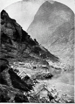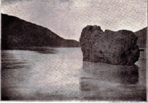 Gyönyörű, változatos tájképek váltják fel egymást. Egy helyütt repedésekkel teli, lezuhanással fenyegető sziklatömbök hajlanak a víz fölé. Izgalmas perc volt, amikor vitorlájuk, majd árbócuk beleütközött egy ilyen lógó szirtbe s már-már azt hitték, rájok szakad a rettenetes tömeg.