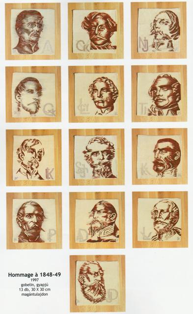 Kapros Kósa Edit: Hommage á 1848-49. 1997. gobelin, gyapjú. 13 db 30 x 30 cm. magántulajdon. A reprodukciót Szelényi Károly készítette.